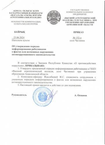 ГОСУДАРСТВЕННОЕ КОММУНАЛЬНОЕ КАЗЕННОЕ ПРЕДПРИЯТИЕ «ВЫСШИЙ АГРОТЕХНИЧЕСКИЙ КОЛЛЕДЖ, СЕЛО ЧАГЛИНКА»  ПРИ УПРАВЛЕНИИ ОБРАЗОВАНИЯ АКМОЛИНСКОЙ  ОБЛАСТИ